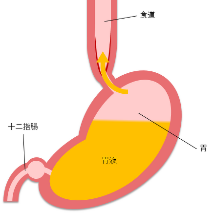 胃酸を多く含む胃の内容物が食道内に逆流して起こる症状を、胃食道逆流症(Gastro Esophageal Reflux Disease:GERD)といいます。逆流性食道炎とはGERDによって食道粘膜に炎症が起きている状態を指します。