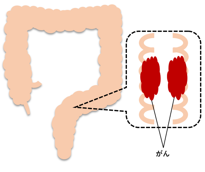 大腸がんは罹患部位としては最も多いがんであり、年間約5.1万人が大腸がんで死亡しています(国立がん研究センター「がん情報サービス」データより)。大腸がんは、腺腫という良性のポリープが癌化して発生するものと、正常な粘膜から直接発生するものがあります。日本人ではS状結腸と直腸にがんができやすいといわれています。 次第に大きくなり粘膜下層、固有筋層、漿膜(しょうまく)へと進んでいきます。粘膜下層までにとどまっている大腸がんを「早期大腸がん」といい、固有筋層より深く浸潤したものを「進行大腸がん」といいます。