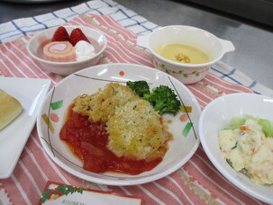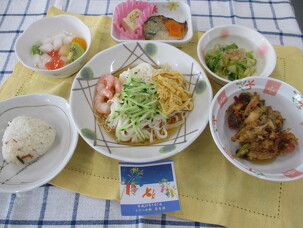 季節を感じていただけるよう、毎月1回程度行事食を提供しています。 お正月のおせち料理をはじめ、桃の節句、七夕、秋の行楽弁当、クリスマスなど様々です。病院食にとらわれないおいしくて体にやさしい料理が提供できるよう努めています。