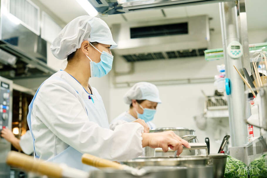 入院中のお食事は基準量に基づいた栄養バランスに加え、安心・安全でおいしい食事を基本とし、『直営方式』で提供しています。病院食の基準の見直しや献立作成、衛生管理、おいしさにこだわった食事の提供に努めています。