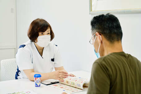入院・外来患者さんを対象に、医師の指示のもと栄養指導を行っています。主に胃や大腸の術後の食事指導や炎症性腸疾患の栄養療法について行っています。また、そのほかに食欲不振や低栄養、排便機能障害などの指導も行っています。 栄養指導を希望される方は医師の指示が必要となりますので、主治医へご相談ください。