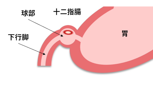 特に十二指腸の中でも、最も胃に近い球部で起こりやすいと言われています。