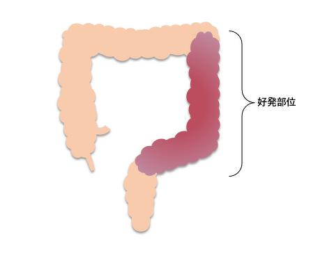 突然の強い腹痛に続いて下痢が起こり、徐々に血便がみられるようになるのが典型的と言われています。また、左側大腸に生じることが多いので左側優位の腹痛が起こることも特徴的です。