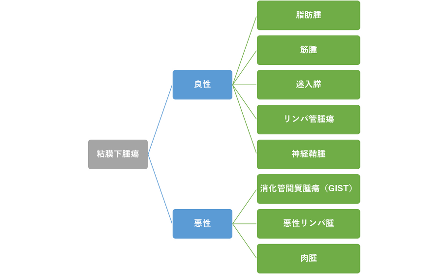 粘膜下腫瘍は、良性の腫瘍と悪性の腫瘍に分けられます。