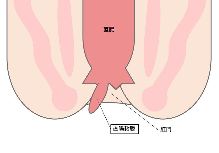 直腸粘膜脱とは、直腸粘膜が肛門へ下がって肛門から脱出した状態のことを指します。